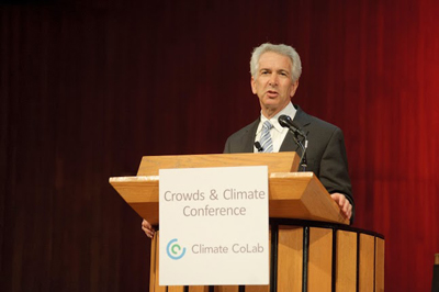 To help bend that line downward and develop creative innovative ideas to take action on climate change, the conference explored the role new technology-enabled approaches—such as crowdsourcing, social media and big data—could play. It was sponsored by the MIT Center for Collective Intelligence’s Climate CoLab, and co-sponsored by the MIT Energy Initiative, MIT Joint Program on the Science and Policy of Global Change, and MIT Sloan Sustainability.